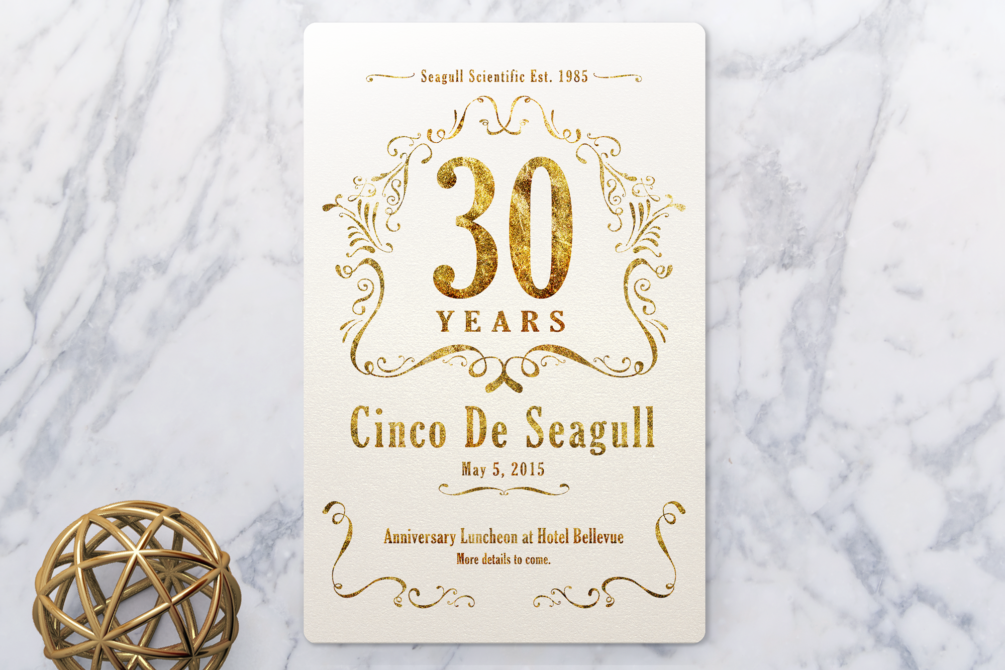 Invitation design commemorating a milestone anniversary for Seagull Scientific.